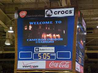 Sorry to be so late in posting my third installment of the week; I have been busy immersing myself in the joy that is Duke basketball. Upon my arrival to campus in 2006, I developed an intense love for Duke basketball, an odd occurrence for a girl who hadn't taken much interest in professional sports for the first 18 years of her life. Some of you may have heard of the "tenting" tradition at Duke. We students camp out on the lawn in front of Cameron Indoor Stadium for 2 months in order gain access to a single game, the match against our cross-town rival, UNC at Chapel Hill. I was one of those crazy kids, sleeping in a tent in 20* weather in hopes of getting good seats for the much-anticipated game. After an experience like that, it's hard not to remain a loyal fan.
